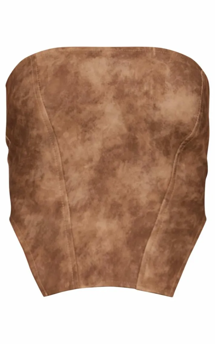 Show off your shape in this chocolate washed faux leather dip hem corset. Brought to you in a chocolate faux leather material with a dip hem, what more could you want? This fierce corset is perfect for those upcoming plans in your diary. Team with a pair of heels, a jacket and your go-to faux leather pants for a look we are obsessed with.
