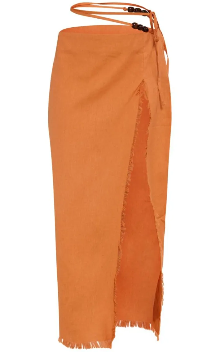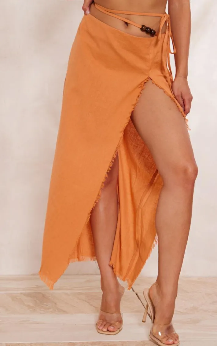 Don’t compromise on your style game this season , this clay linen feel tie side bead details midi skirt is sure to be at the top of your hit list. It is made using a clay hue linen feel material with a tie side design and bead detailing, how could you resist? Pair this midi skirt with a bralet, clear heels and gold hoop earrings for a look everyone will want.