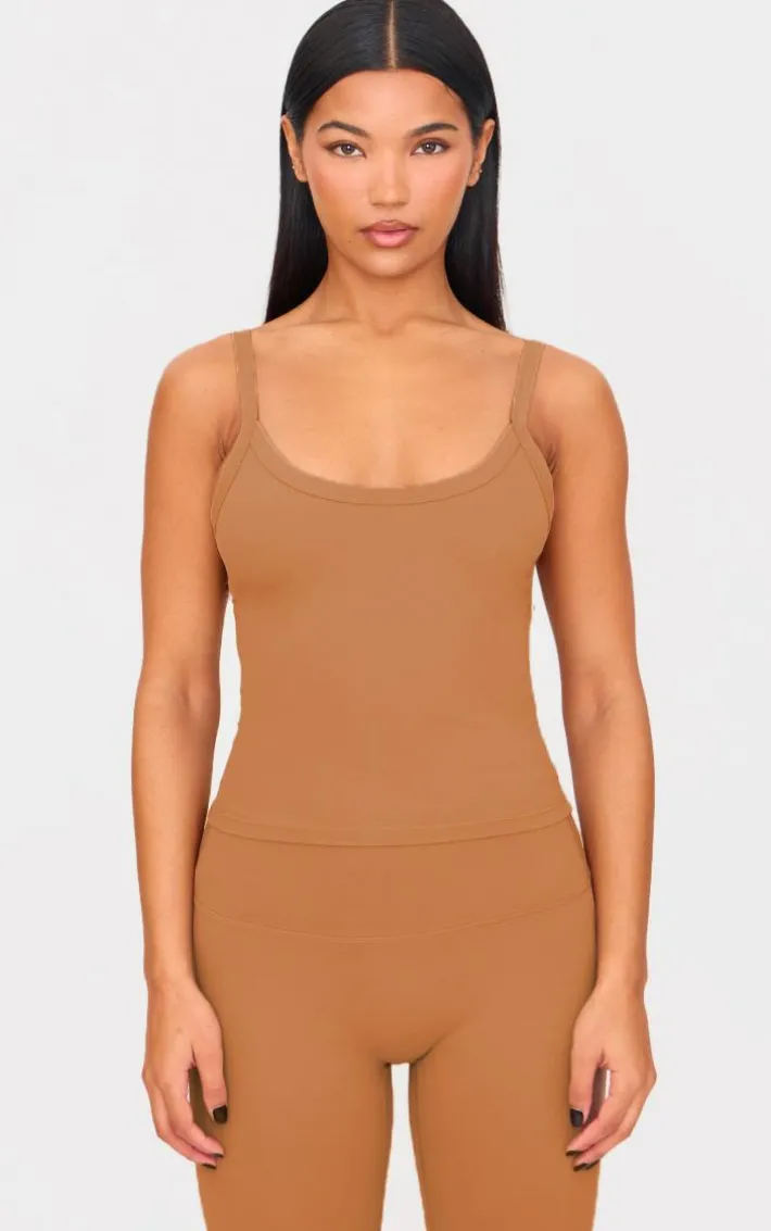 Keep your look comfy with this clay sculpt strappy gym Vest top. Brought to you in a clay sculpt material with a strappy design, this gym Vest top is all you need for those on the go days. Style with the matching comfy pants and your fave sneakers for a look we are loving right now.