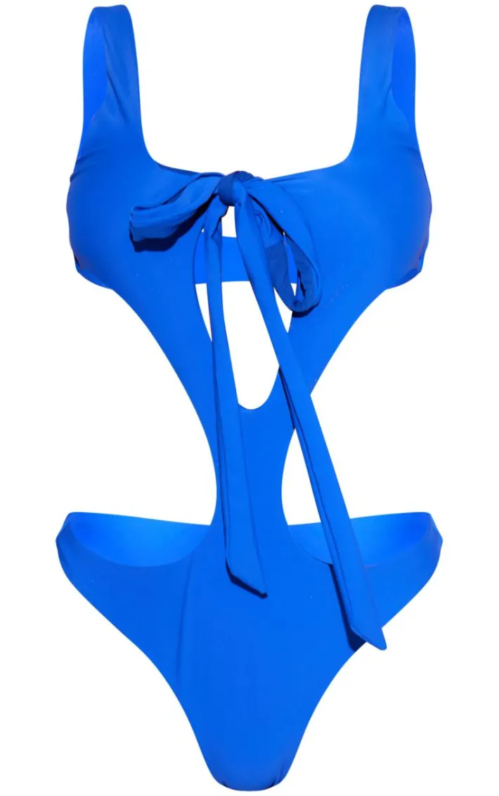 Add a pop of blue into your vacay wardrobe with this cobalt blue cut out tie swimsuit. This swimsuit is brought to you in a cobalt blue material with a cut-out front and tie detail, what’s not to love? This swimsuit is calling your name. Simply style this with sandals and accessories for a vacay look like no other.