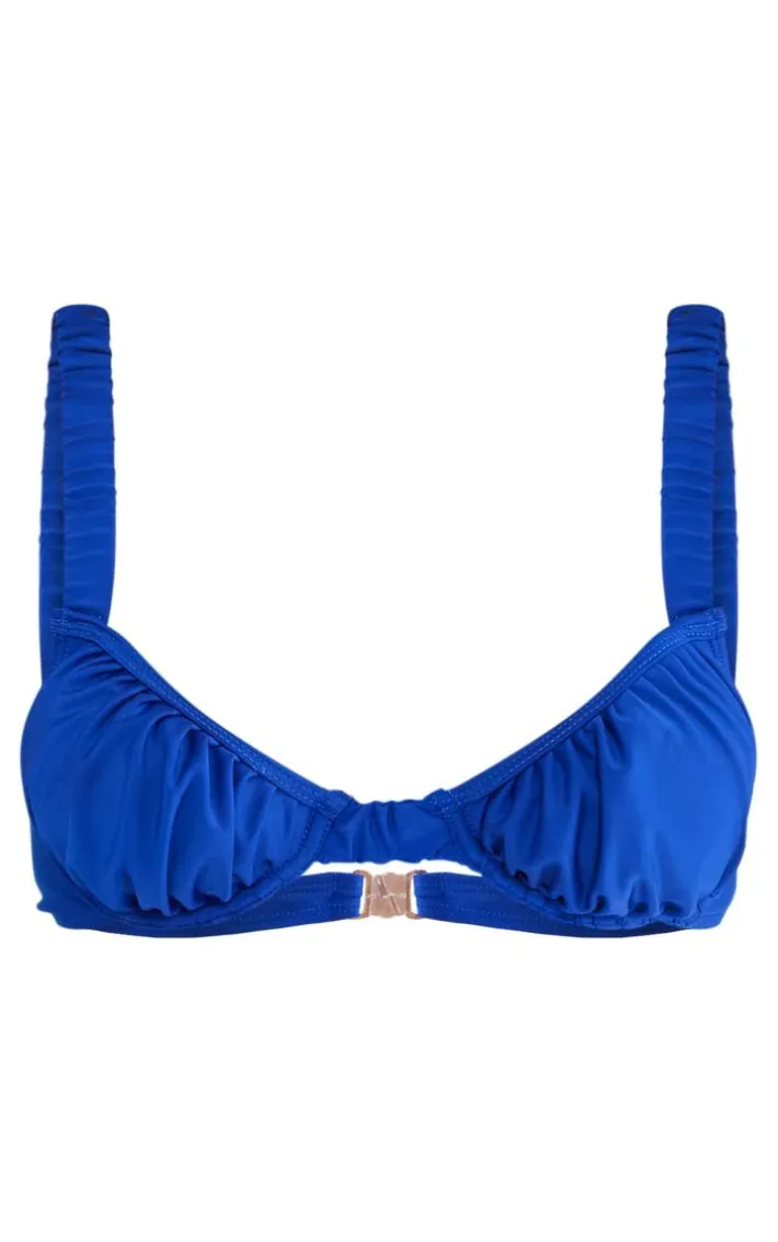 Get ready to show off your glow in this unreal cobalt blue ruched underwired bikini top, you’re sure to be stealing all the stares. This bikini top features a cobalt blue material with ruched detailing and an underwired cup design. Style it with the matching bikini bottoms and your fave accessories for a look we just can’t get enough of.