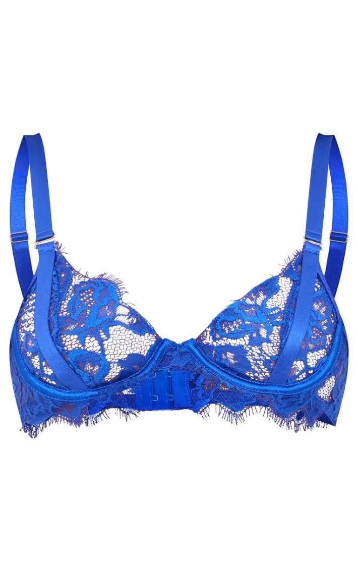Introducing this cobalt eyelash lace underwired bra for your new season staple. Brought to you in a cobalt hue eyelash lace material with an underwired design, this bra is a must have for your wardrobe refresh. Style with the matching thong and simple accessories to own the night.