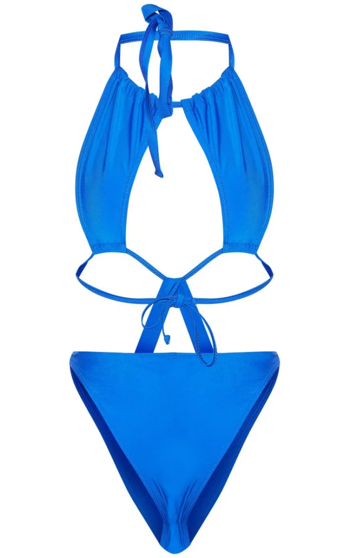 Steal all the stares in this cobalt halter neck cut out swimsuit. Brought to you in a cobalt material with a halter neck detail and cut out design, what’s not to love? Style with gold accessories for an insta-worthy vibe.