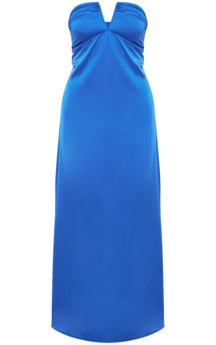 You are guaranteed to have all eyes on you in this cobalt satin V bar floaty bandeau maxi dress. Brought to you in a cobalt hue satin material with a bandeau neckline, v bar detailing and a floaty maxi fit, how can you not fall in love? Style this maxi dress with clear strap heels and some luxe gold accessories for a look that is sure to earn you all the compliments.