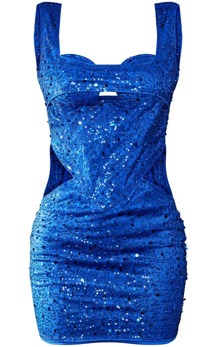 Get ready to steal the show in this cobalt sequin cut out cup detail thick strap bodycon dress, no one will forget this statement piece. It features a cobalt hue sequin material with a cut out design and thick strap style, we’re seriously in love. Pair this bodycon dress with your highest heels and simple accessories for a luxe look everyone will be obsessing over.