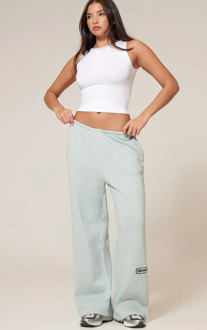 Give your new season wardrobe a fresh upgrade with these cool blue studio embroidered thin waistband drop crotch sweatpants, we’re obsessed. These sweatpants feature a cool blue material with a ‘Studio’ embroidered detail and a thin waistband, what more could you want? Team with a staple white tee and fresh kicks for a fool proof finish.