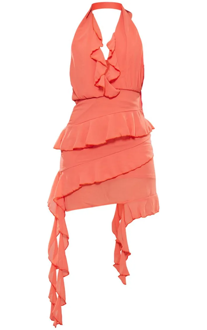 Add some dreamy hues into your new season wardrobe with this coral chiffon frill detail drape halter neck mini dress. With a coral hue chiffon material with frill detailing and a halterneck design, what more could you want? Team this dress with your fave heels and statement accessories for a look we just can’t get enough of.