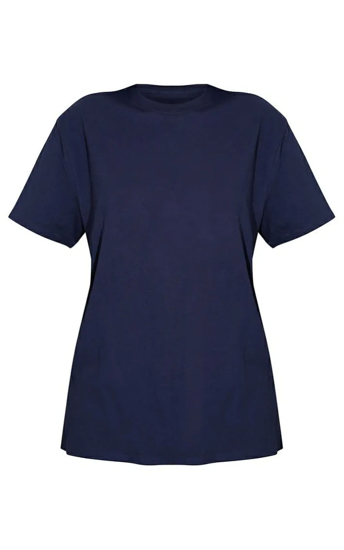 Upgrade your essentials with this unreal tee. Featuring a navy material with an oversized fit and a relaxed style. Team with wide leg bottoms and slip-on heels for a simple but chic look.