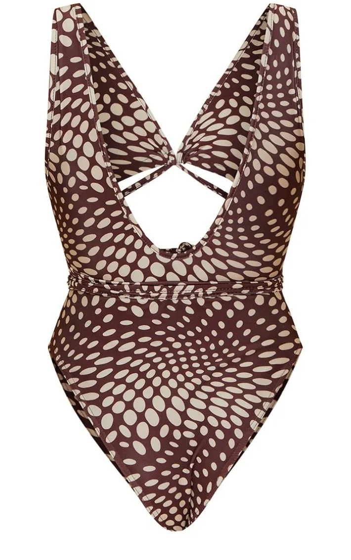 Get maxing out your vacay wardrobe with this swimsuit. Featuring a cream hue abstract polka dot material with cut out detail and wrap around design, what’s not to love? Just add hoop earrings for an effortlessly chic combo.