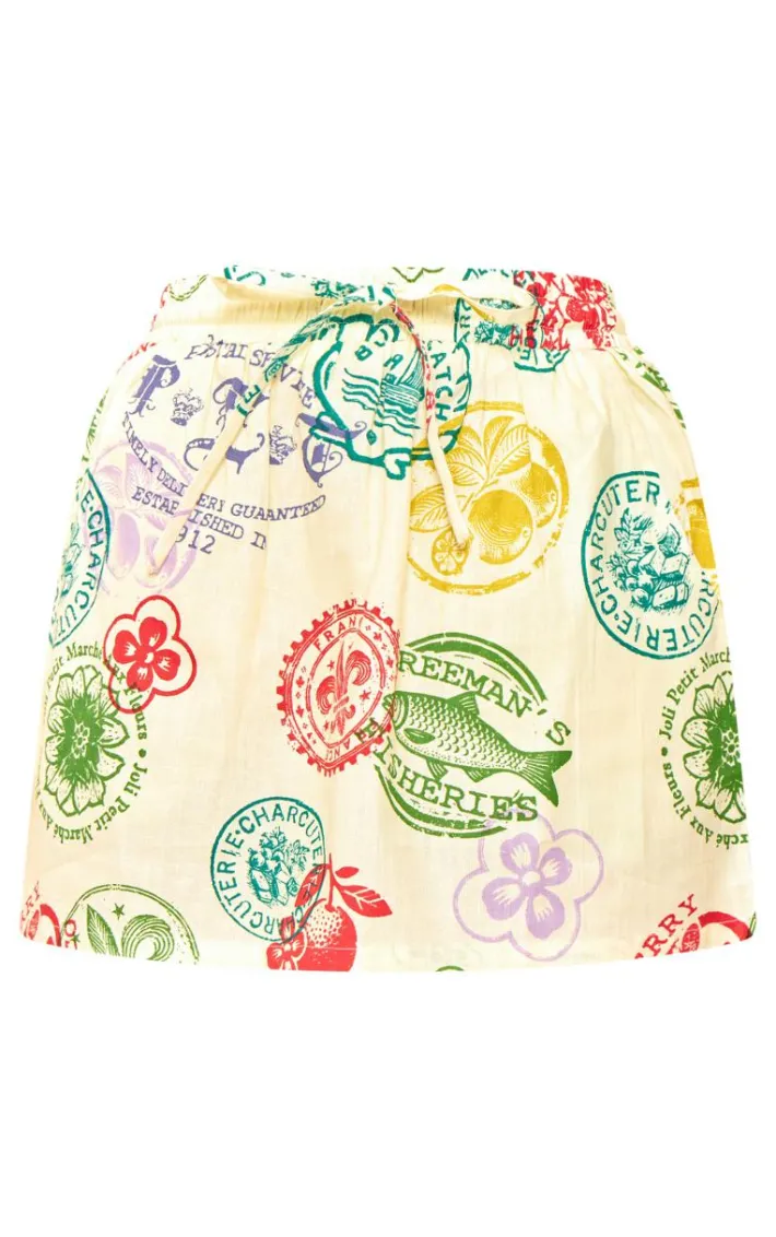 Brighten up your new season wardrobe with this cream abstract print linen look elastic waist mini skirt. Made from a cream hue linen look material with an abstract print design, an elasticated waist and a mini length, how can you say no? Pair this mini skirt with the matching shirt, sandals and a bralet for a look that is sure to make you stand out from the crowd.
