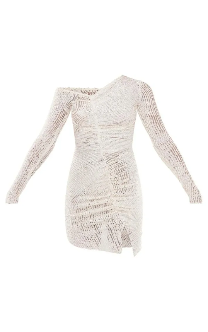 Got plans for the weekend ? Then this cream asymmetric neck ruched textured bodycon dress is here to solve all your styling dilemmas. It features a cream textured material with ruched detailing and an asymmetric neck design, what’s not to love? Style this bodycon dress with slip-on heels and a shoulder bag for a dreamy date night look.