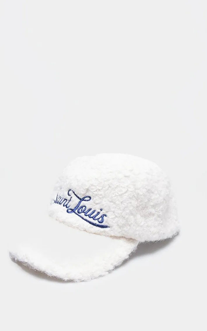 Opt for style this season with our cream borg boucle ‘saint louis’ cap. Nail the clean girl aesthetic with its fresh cream color, borg boucle material and Graphic writing detail. Simply style with your best winter outfit for a look that we will be obsessing over.