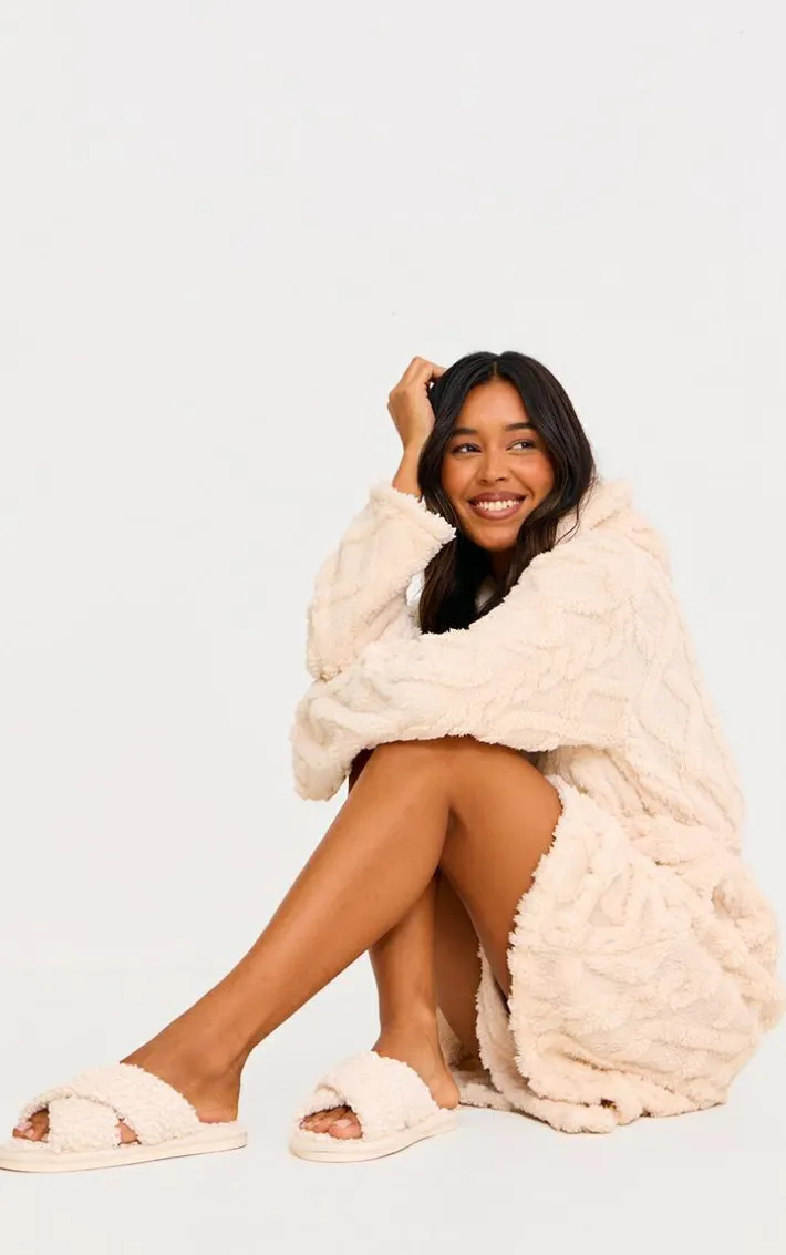 On the hunt for a new cosy staple? We’ve got you with these cream borg cross over slippers. Brought to you in a luxe cream shade, with the ultimate borg material for extra comfort and a cross over design, you won’t want to take these off. Style with a soft outfit as the perfect finishing touch.