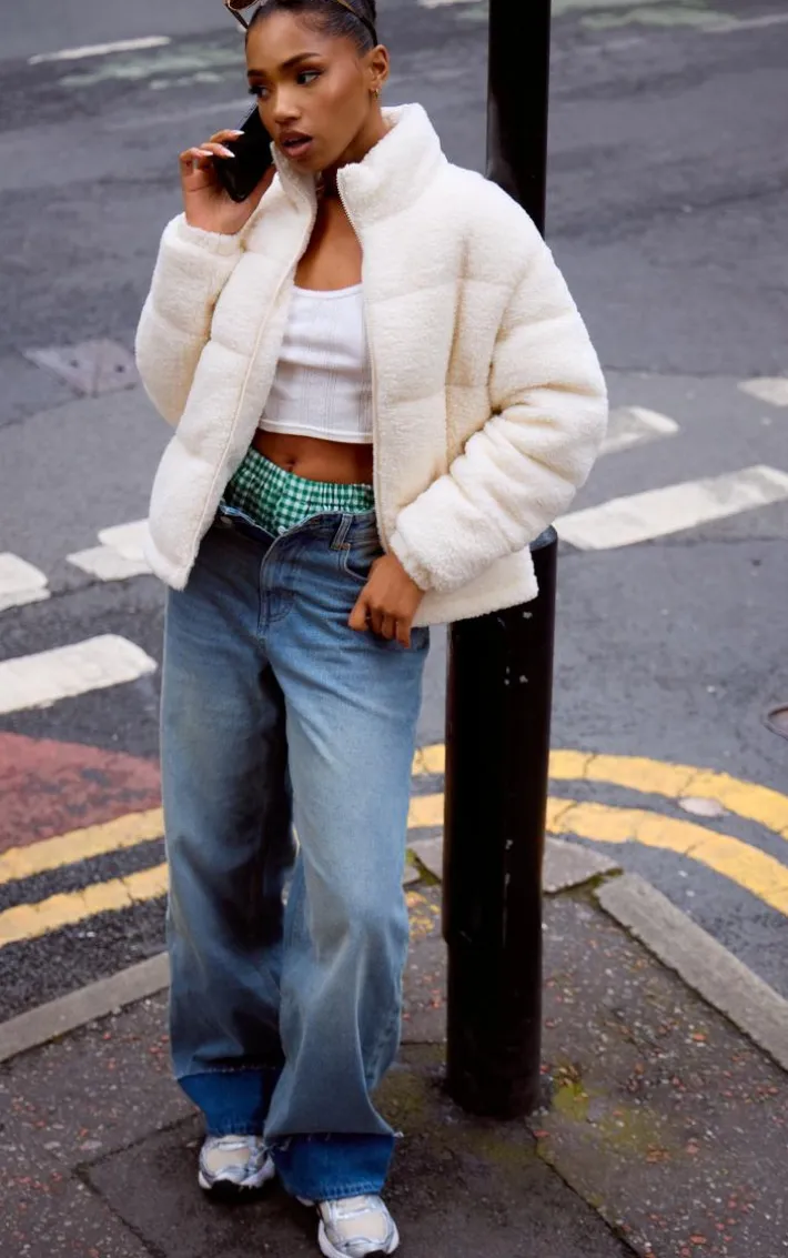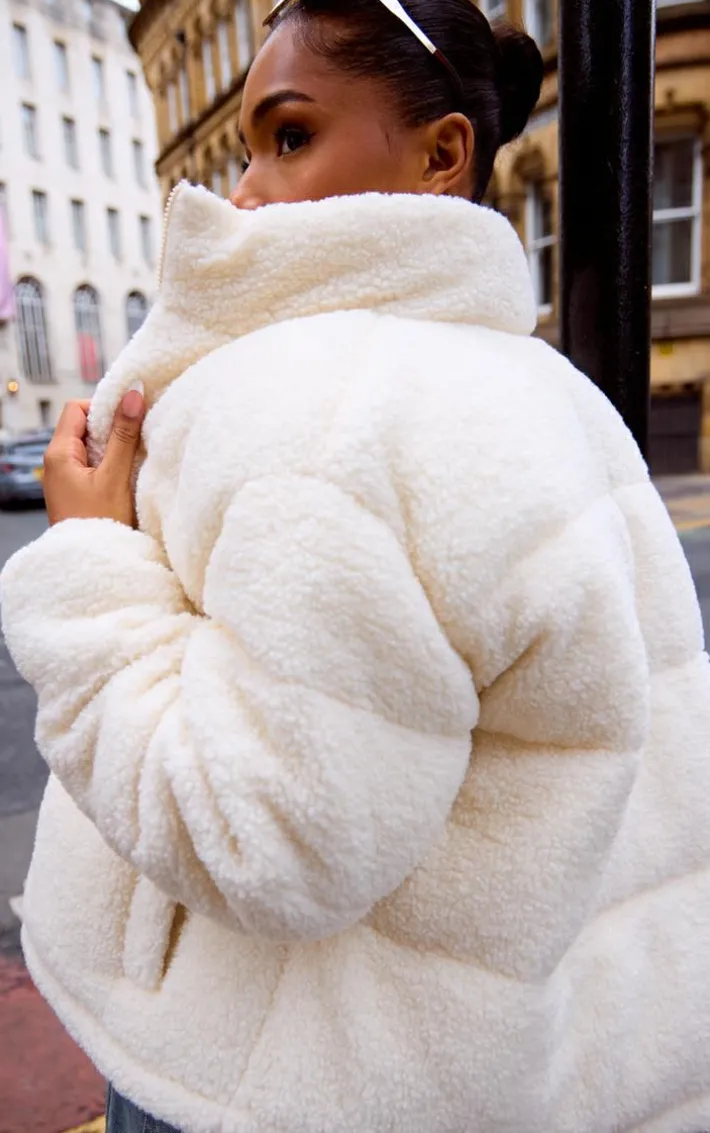 This cream borg teddy puffer coat is all the new you need for the season ahead. Brought to you in a cream hue borg material with a teddy design, you’ll be reaching for this puffer coat all through the colder months. Style over a pair of jeans and white crop top for a chic finish we can’t get enough of.