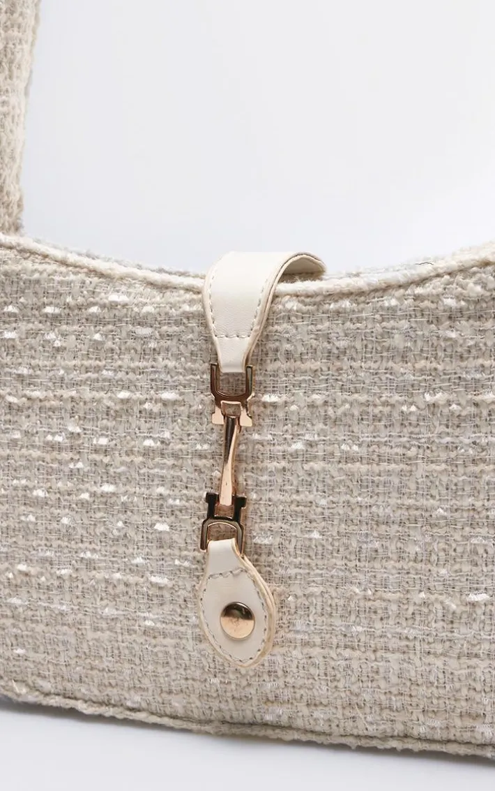 Add some luxe vibes to your fit with this cream boucle clasp detail shoulder bag. Brought to you in a cream boucle material with a clasp detail, this shoulder bag is everything you need and more. Style with a chic outfit of the day for a look that won’t miss.