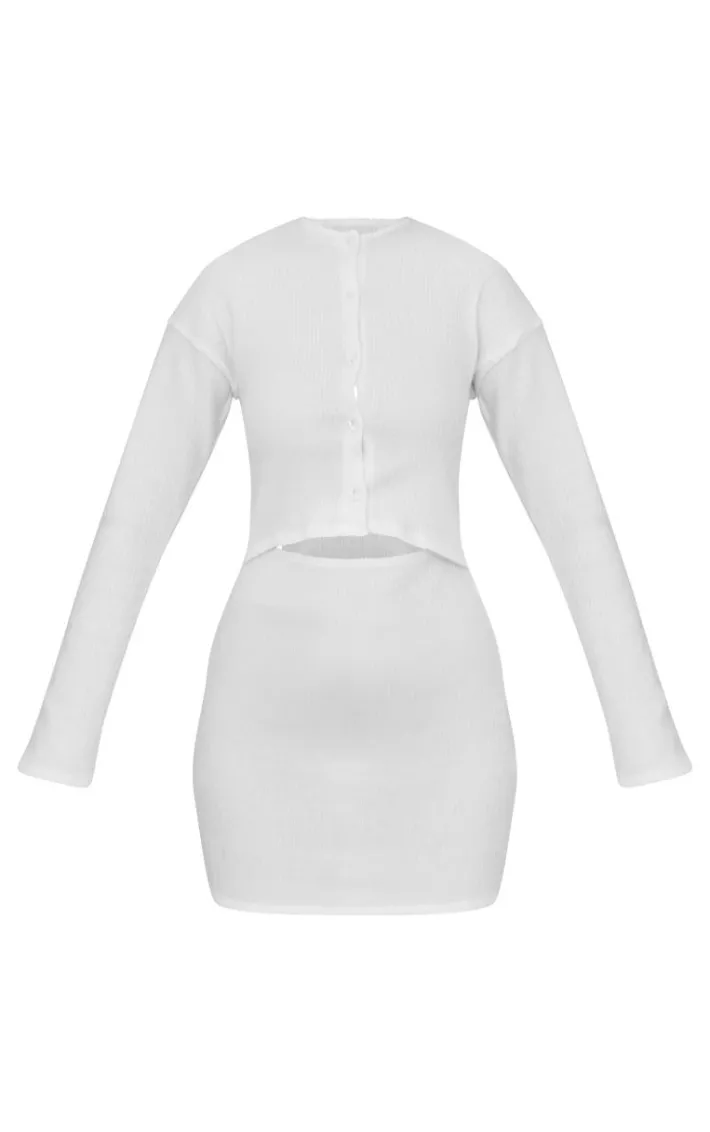 Level up your look with this cream brushed rib button detail long-sleeve bodycon dress. Brought to you in a cream brushed rib material with a button detail and a long sleeve design, what more could you want? Team this bodycon dress with some black loafers and your go-to accessories for a look like no other.
