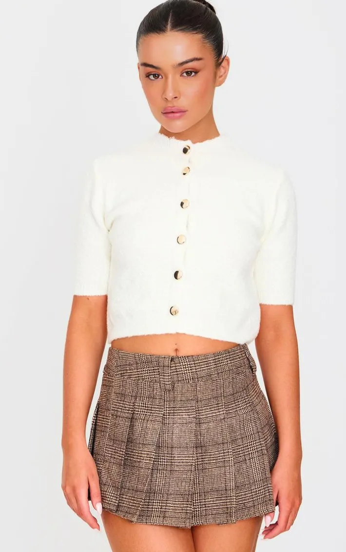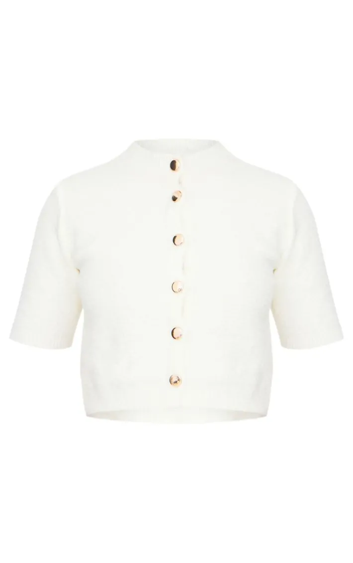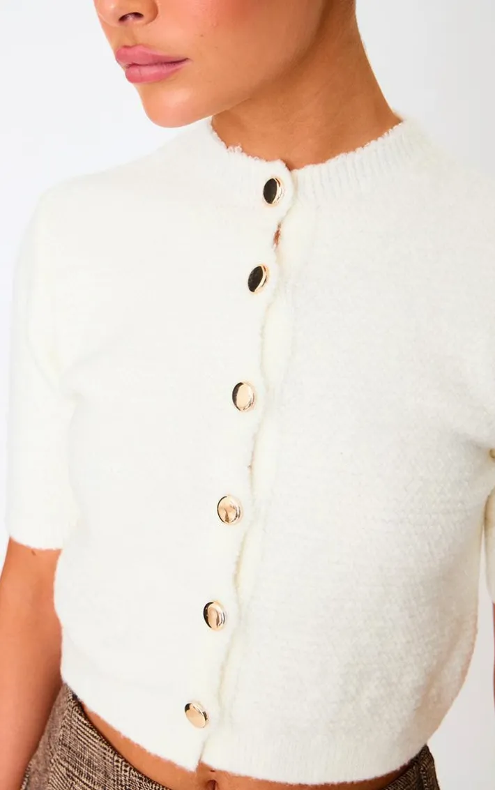 Look all kinds of chic in this cream button up cap sleeve boucle knit cardigan. Brought to you in a cream hue boucle knit material with a button up fastening and cap sleeve detail, this cardigan is a must have for all your styling needs. Team with a mini skirt, slip on heels and gold accessories for a look like no other.