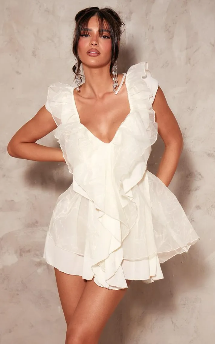 Create a look no one will forget with this dreamy cream chiffon frill micro mini dress, we just can’t get enough. This dress features a cream chiffon material with frill detailing and a micro mini length. Style this chiffon dress with strappy heels and statement accessories to have all eyes on you.