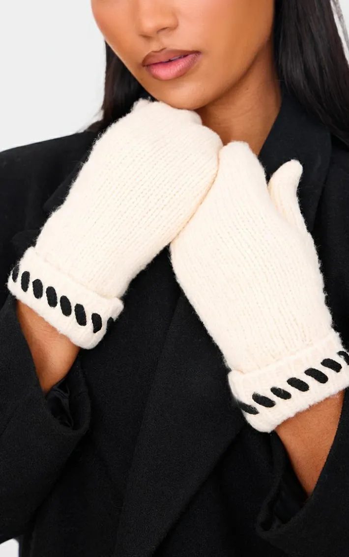 You need these cream contrast stitch knit mittens in your new season collection. Brought to you in a cream knit material with a contrast stitch design, what more could you want? Team these mitten with your fave outfit of the day for a fool proof finish everyone will be talking about this season and beyond.