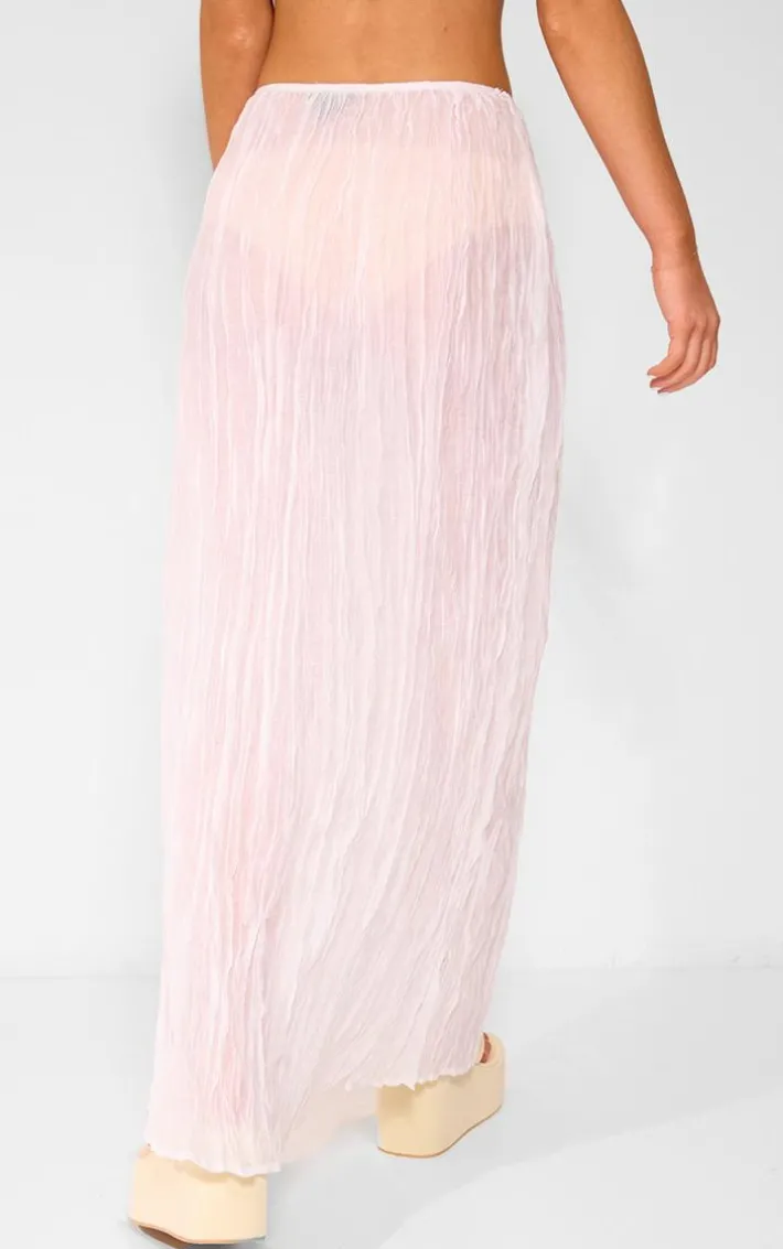 Your new season wardrobe is in need of this cream crinkled sheer woven maxi skirt. Brought to you in a cream hue crinkled sheer woven material with a flattering maxi fit, how can you say no? Style this maxi skirt with a crop top, flatform sandals and statement accessories for a look that is guaranteed to make heads turn wherever you go.