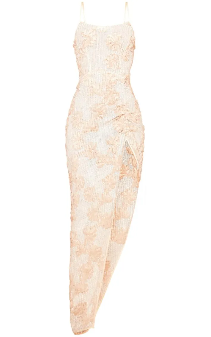 Make heads turn for all the right reasons in this cream crochet floral detail ruched midi dress. Brought to you in a cream hue crochet material with a ruched design and floral detailing for that extra touch of glam, how can you resist? Style this flattering maxi dress with heels and gold accessories for a flawless finishing touch.