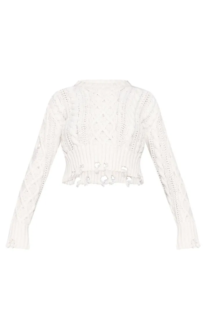 Say hello to the cream distressed cable knit cropped sweater. Its fresh cream shade, with a distressed cable knit material and cropped design has us obsessed. Pair with a black mini skirt over pants moment, leather boot heels and some silver accessories for a look we’re all after. We’ve got you covered for that edgy day to day vibe.