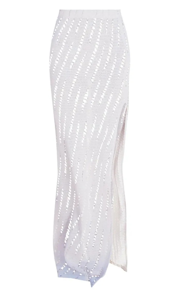 Hey , why not treat yourself to our unreal cream distressed knit maxi skirt? Brought to you in a cream knit material featuring a distressed style and a maxi length, you’ll look irresistible. Team this maxi skirt with a bold top and fresh kicks to earn all the compliments.