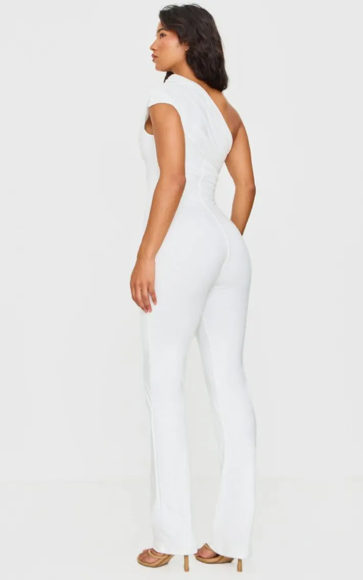 Your wardrobe is calling out for this cream double layer contour jersey asymmetric ruched detail jumpsuit. Brought to you in a cream hue double layer contour jersey material with an asymmetric ruched detail, this jumpsuit is a must have. How can you resist? Pair with white heels and chic accessories to steal all the stares.