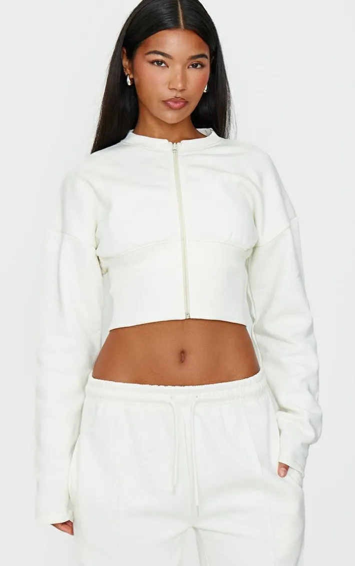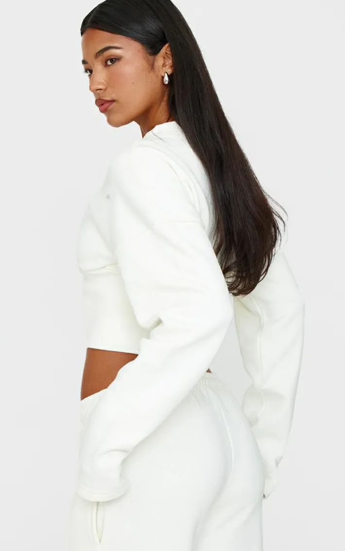 Keep it chilled with this cream extreme cinched waist Sweatshirt. Brought to you in a cream material with an extreme cinched waist giving you a flattering fit everyone will be obsessing over. Team with your go-to gold hoops and a pair of sweatpants for a look that will earn you all the styling points no matter what the occasion.