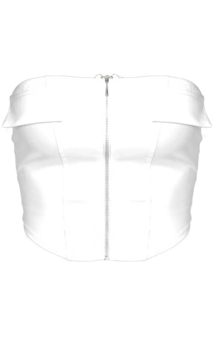 When the weekend calls for a little drama this cream faux leather bust detail zip up front corset will have you at the center of attention. It is made using a cream faux leather material with a cream faux leather material with bust detail and a zip-up front, what more could you want ? Style this with faux leather bottoms, clear slip-on heels and statement accessories to elevate the look further.