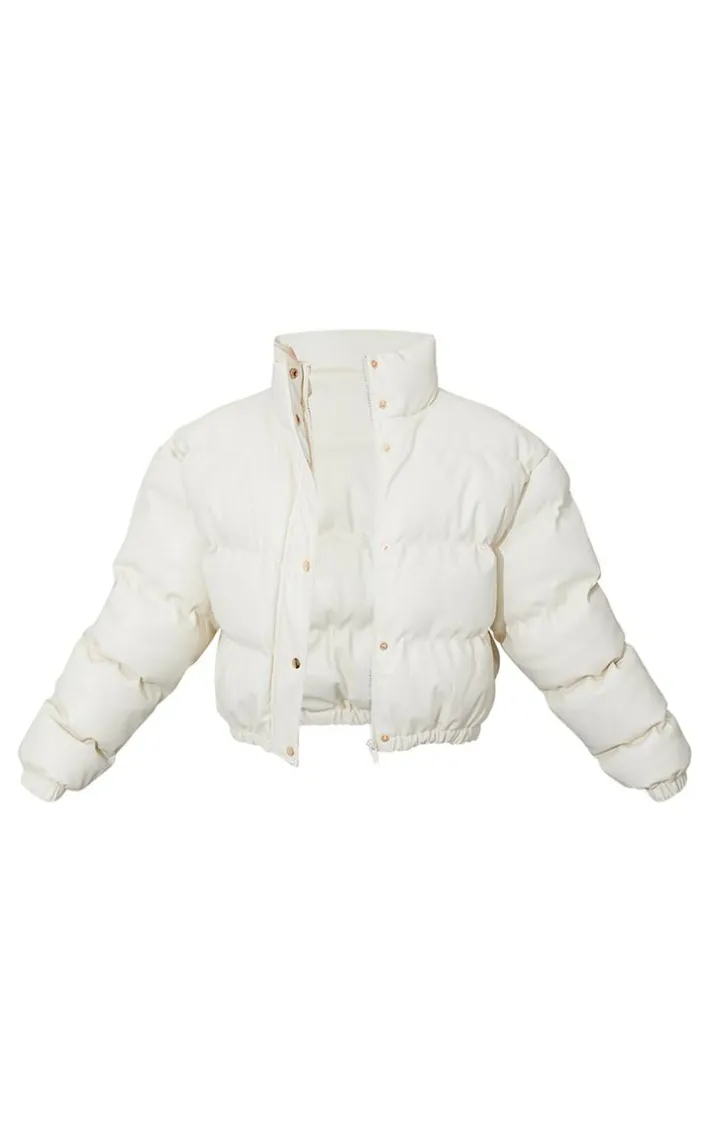 Take your new season styling to the next level with this puffer jacket. Featuring a cream hue faux leather material with an elastic hem and a bubble design, we’re obsessed. Team with comfy bottoms and chunky kicks for an effortlessly on-point combo.