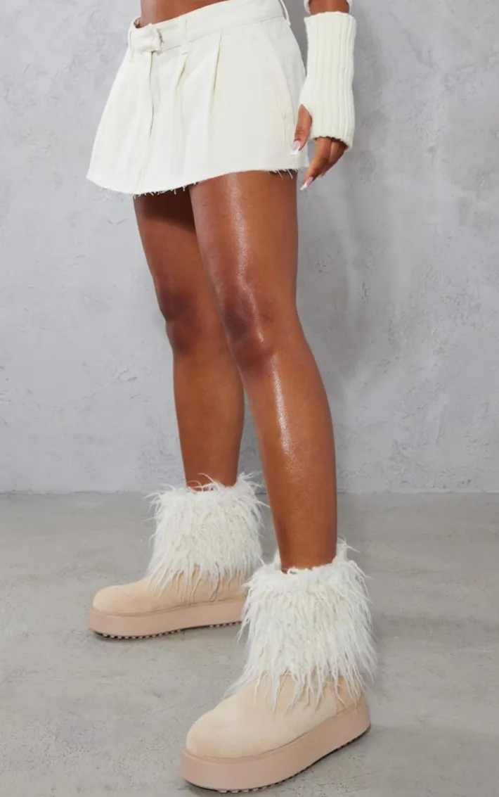Step out in style and be ready to set trends in these boots. Featuring a cream faux suede material with a contrasting faux fur design, we’re obsessed.