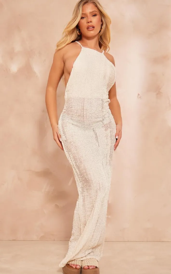 Turn heads for all the right reasons with this cream flower back textured maxi dress. Brought to you in a cream textured material with a flower back detail, you are sure to set major trends this season and beyond. Team with a pair of chunky sandals and gold accessories to finish off the look we are obsessing over.