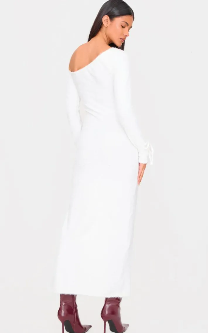 Keep it chic with this cream fluffy one shoulder maxi dress. Brought to you in a versatile cream shade, with a cosy fluffy material and one shoulder design, you can never have too many dresses and this one is a must have. Team with a pair of seasonal boots and simple accessories for a look like no other.