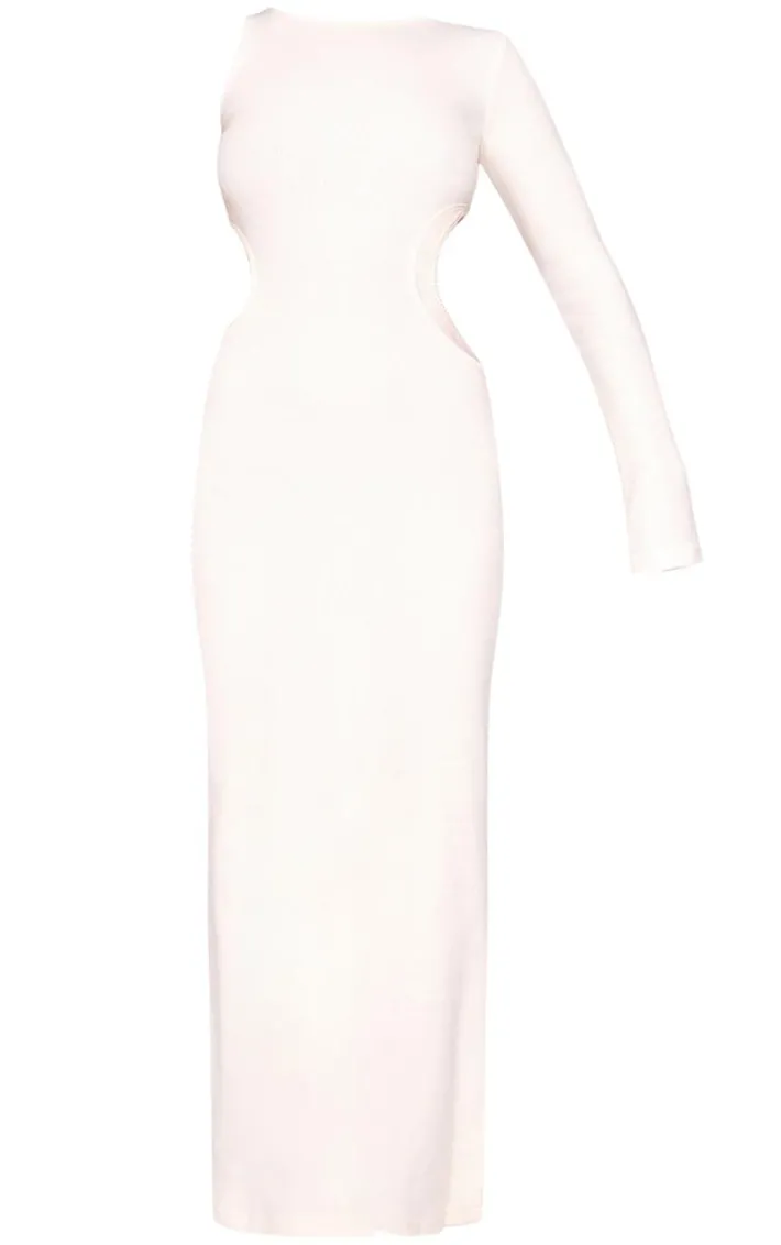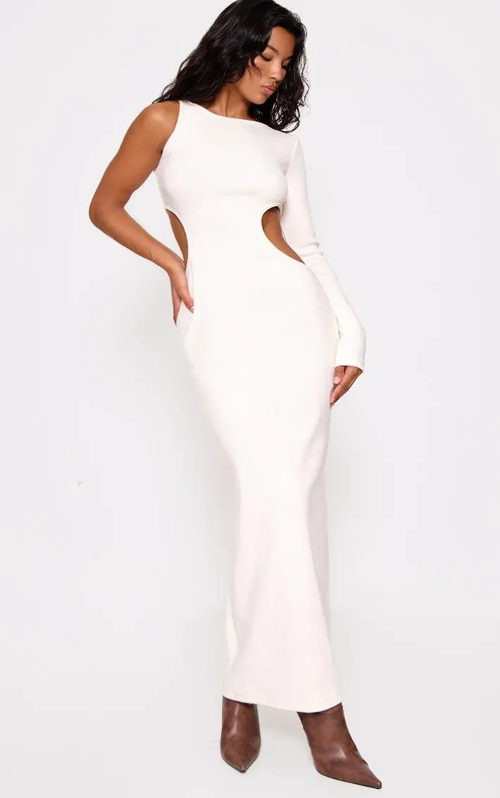 This cream heavy brushed rib cut out maxi dress is an elegant addition to your evening wardrobe. Brought to you in a crisp white shade, a luxe heavy brushed rib material and cut out design. Style with some chocolate leather look boots and a shoulder bag for a finished look.