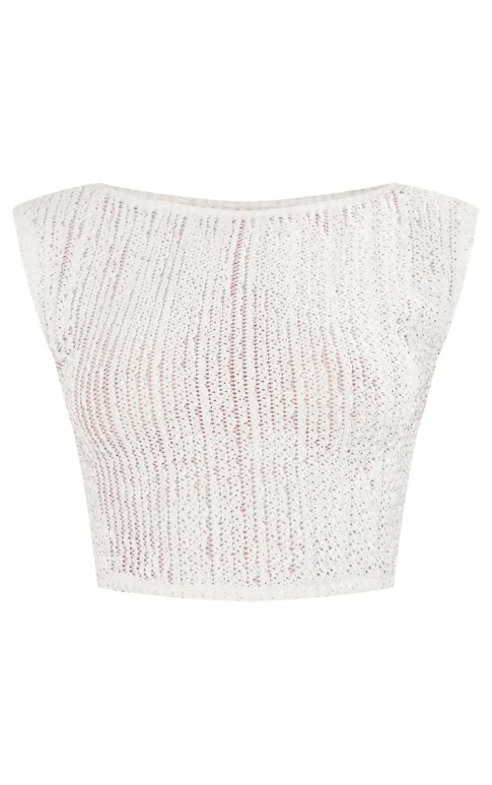 We’re obsessed with this cream knit look textured jersey open back crop top for your new season wardrobe. With a cream knit look textured jersey material to bring a luxe touch to your look and an open back design for some glam vibes, what more could ask for? Whatever your plans are for the summer season, we are loving this paired with matching hue shorts, sandals and a raffia bag for a dreamy finish.
