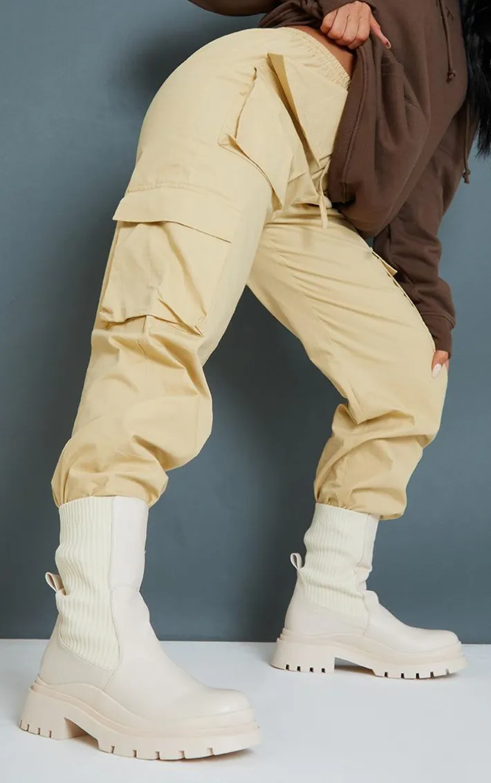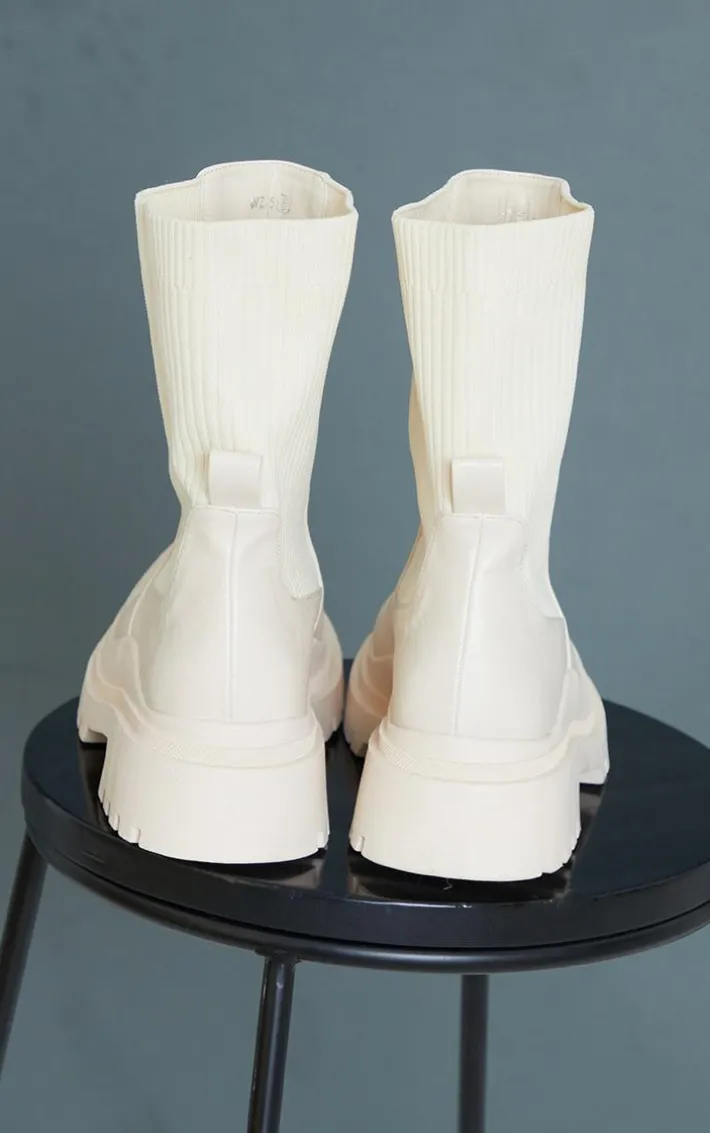 Hit refresh on your outfit of the day with these boots. Featuring a cream material with a knitted panel design and a chunky sole, what’s not to love?