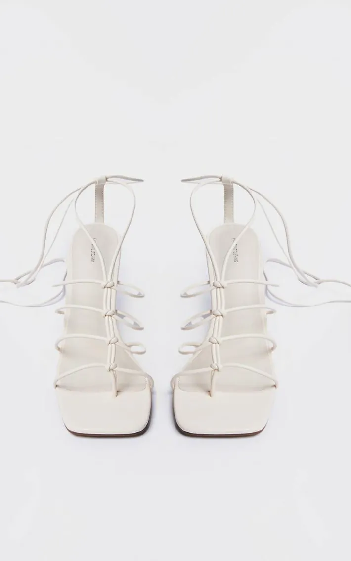 Instantly elevate your weekend look with these cream knotted lace up barely there sandals. Brought to you in a cream hue material with a lace up design, knotted detailing and a barely there style, how can you resist? Just team these cream sandals to your fave wardorbe pieces to add a subtle touch of chic to your look.