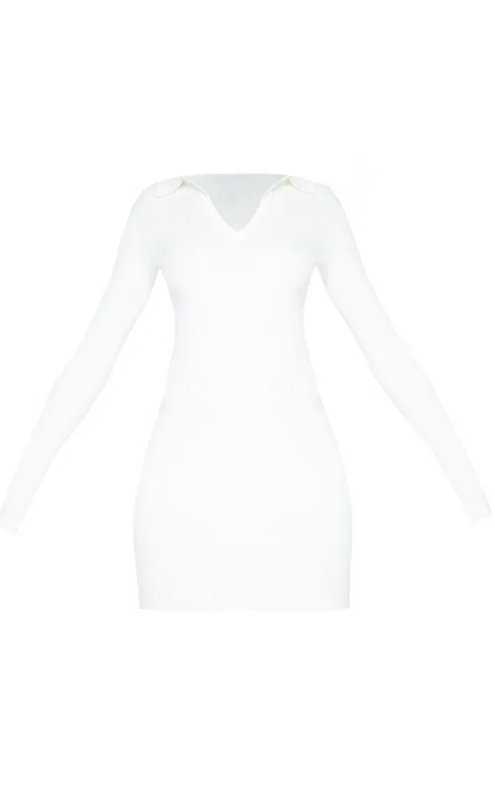 Add some fresh, feminine feels to your after-dark look with this dress. Featuring a cream ribbed knitted material with long sleeves and a bodycon fit, we’re in love. Add a layered necklace and chunky kicks for a look that will turn heads.