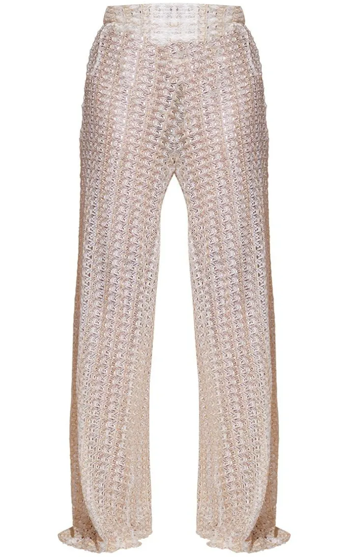 These bottoms are sure to get you noticed at the beach. Featuring a cream metallic material with a netted crochet design and a wide leg fit, we are in love. Wear with the matching pieces to have heads turning.