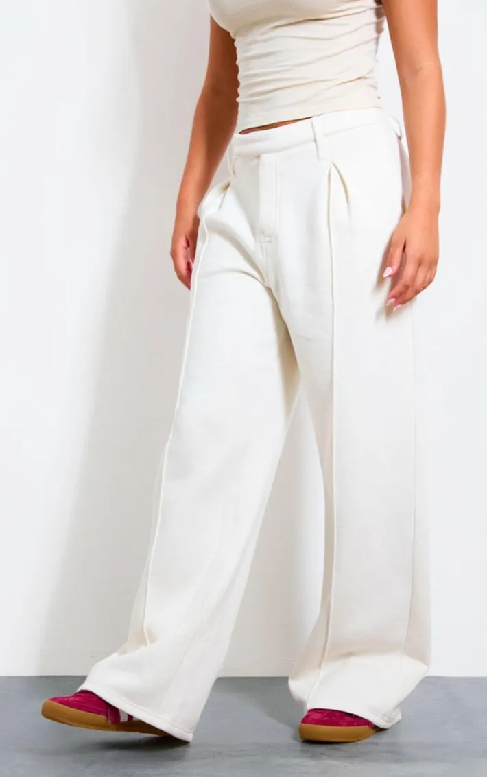 Amp up your off-duty wardrobe with these cream pintuck fleeceback tailored sweatpants. Brought to you in a cream fleeceback material with a pintuck design and tailored fit, these sweatpants are calling your name. Style with a white tee, fresh kicks and simple accessories for a look like no other.