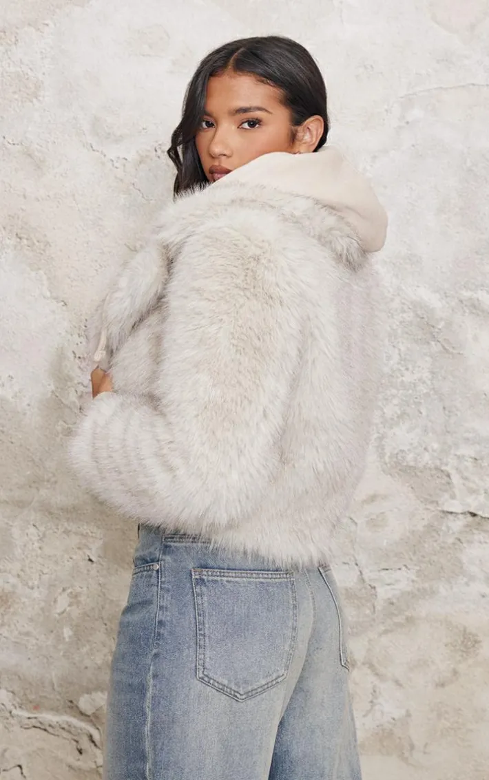 Elevate your next look with this cream plush faux fur collar detail coat. Brought to you in a cream hue faux fur material with a plush design and collar detail, this coat is all the new you need. How can you resist? Team with a white tee, blue jeans, fresh kicks and simple accessories for an on trend look we’re loving.
