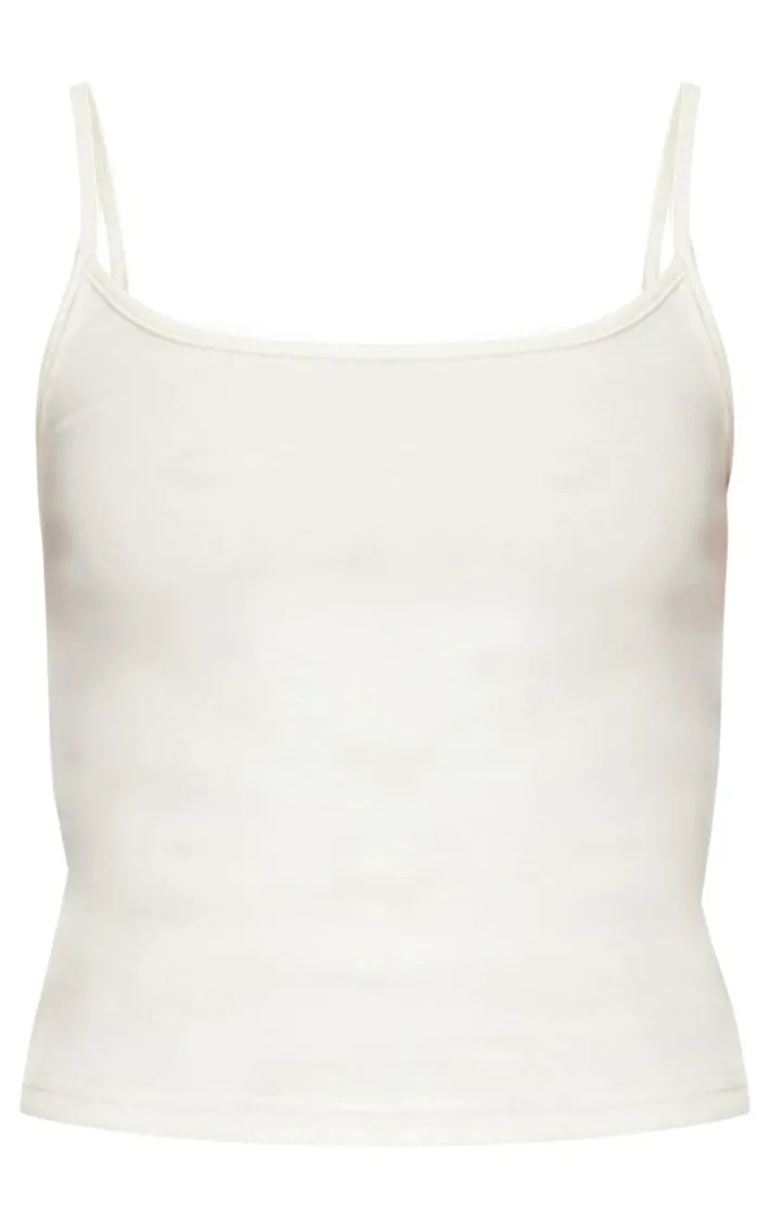 This cream premium soft touch strappy cami top will instantly elevate your chilled look. Brought to you in a neutral cream shade, with a cosy soft touch material and flattering strappy design, this cami top can be worn on its own or under mesh tops as a versatile option. Team with a pair of sweatpants and simple accessories to complete the look.