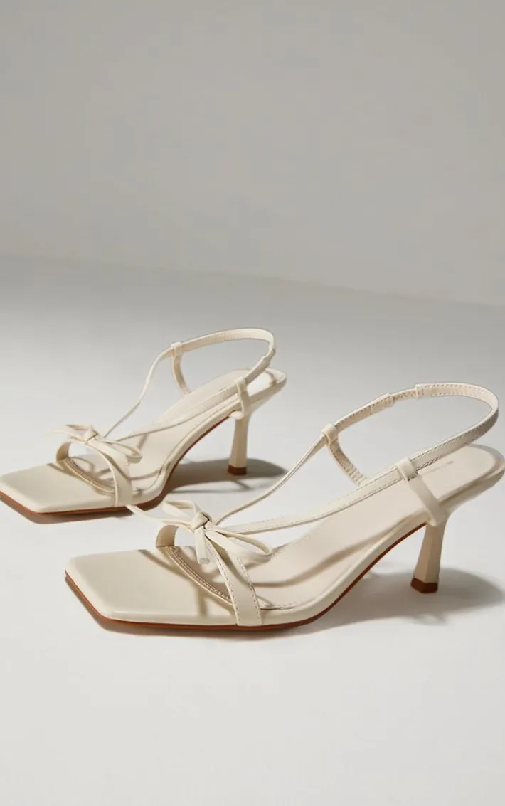 To elevate any look, opt for these cream PU square toe bow sling back mid heeled sandals. Brought to you in a staple cream shade, with a PU material, square toe design and a bow detail, you’ll feel instantly feminine. Style with a dress and cream shoulder bag to finish the look.