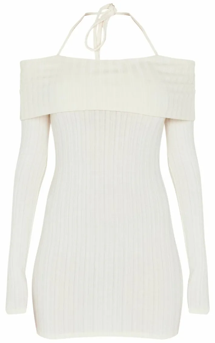 Look all kinds of chic in this cream rib bardot fold over bardot dress. Brought to you in a cream rib material with a bardot fold over design and a bodycon fit, what’s not to love? This dress is all you need to solve those what to wear dilemmas. Pair with your go-to knee high heeled boots and a statement shoulder bag to finish off the look we are loving.