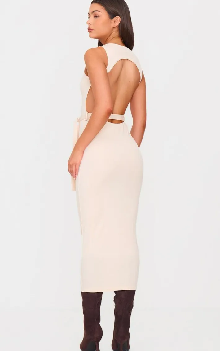 Introducing this cream rib cut out back detail tie waist midaxi dress. Brought to you in a cream ribbed material with a cut out back design and a tie waist detail, what’s not to live? Style this midaxi dress with on trend slides for a look we’re loving. How can you resist?