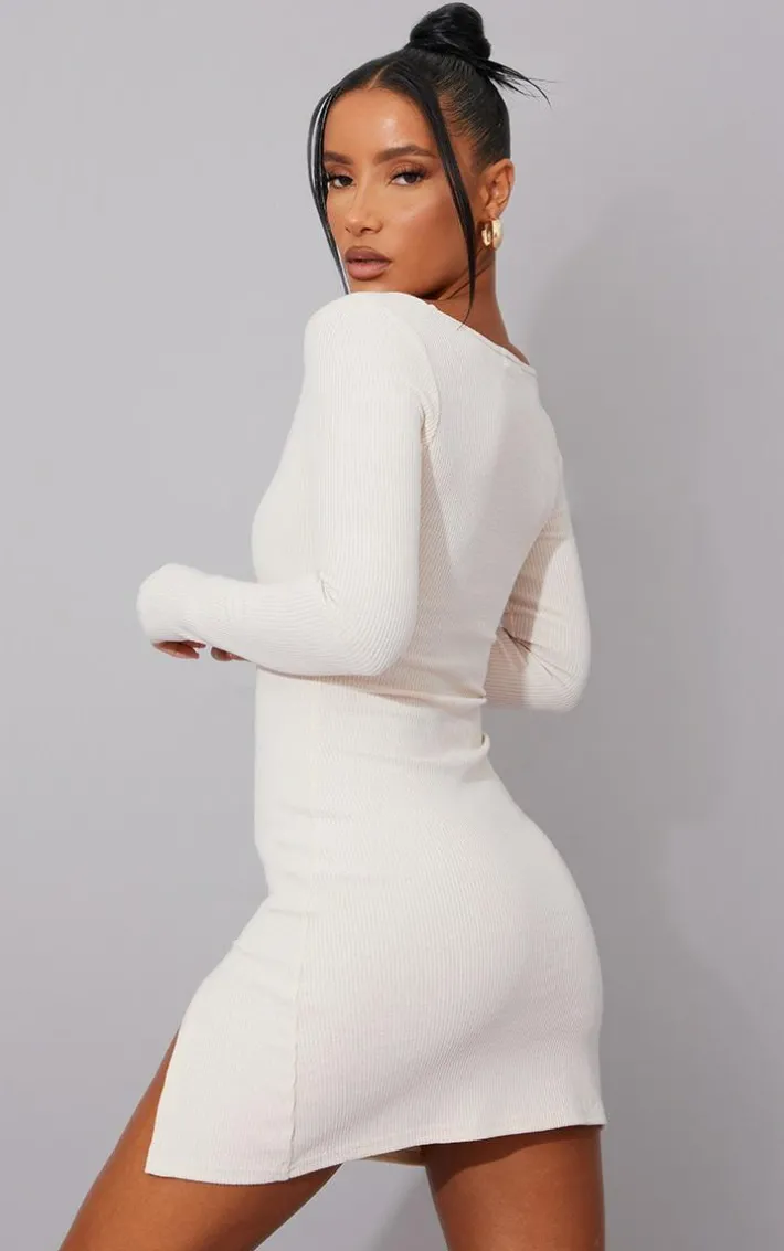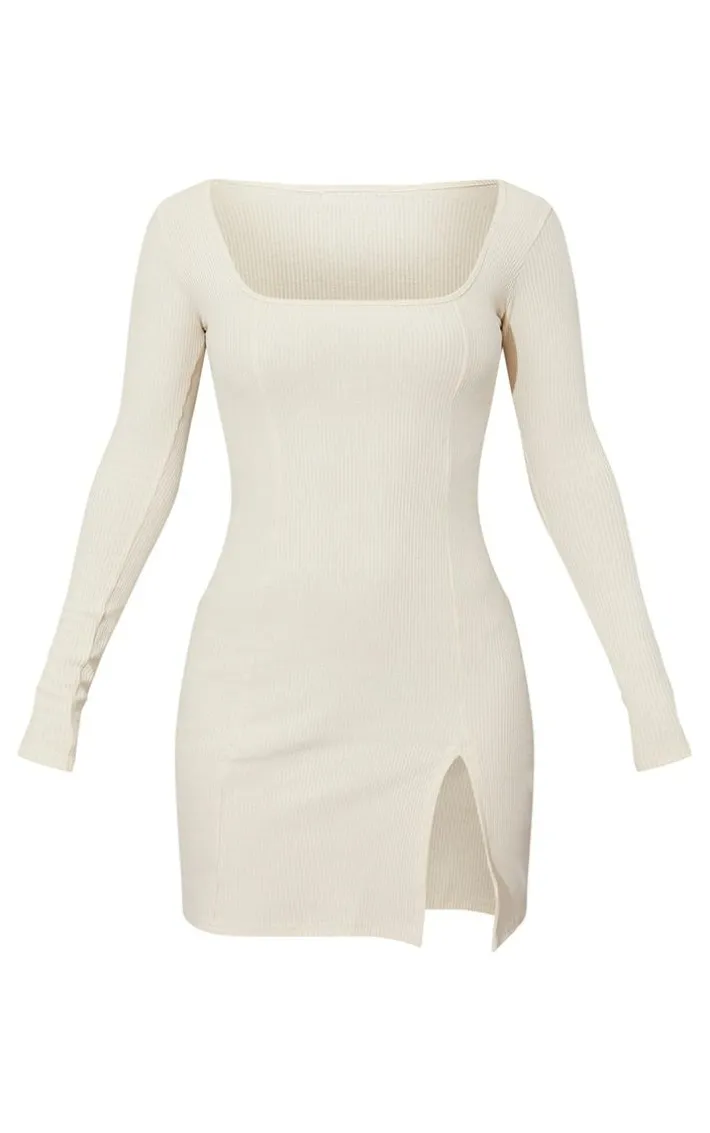 This simple dress is perfect for dressing up or down. Featuring acream ribbed material with a square neckline, long sleeves, and split hem design, what’s not to love? Team this with chunky boots and simple accessories to complete the look.