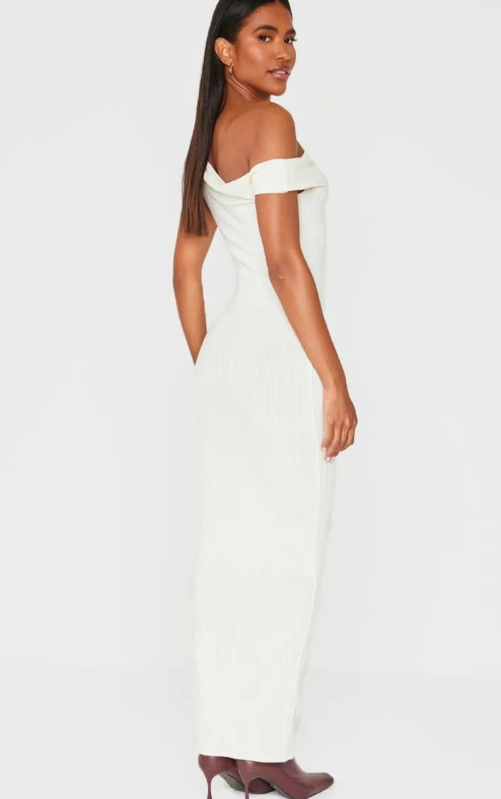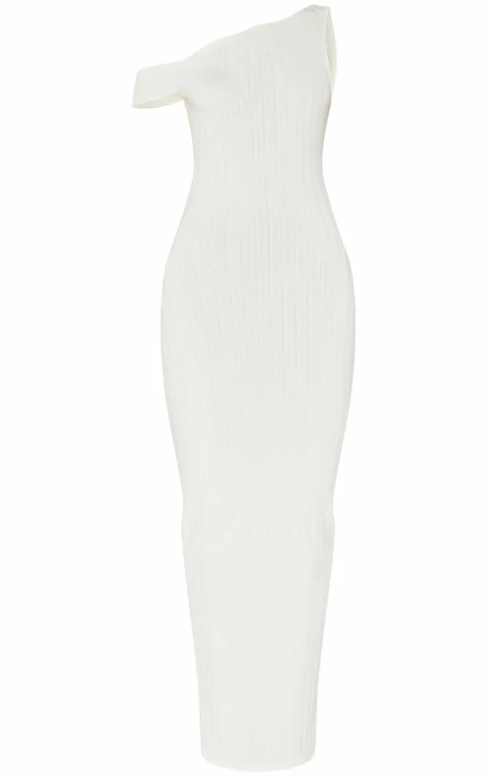 Enter the new season in style with this cream ribbed asymmetric maxi dress. Brought to you in a cream ribbed material with an asymmetric neckline and a figure-flattering maxi fit, how can you resist? Seriously chic and perfect for dressing up or down, this maxi dress is sure to become a staple in your wardrobe. Just add boot heels and gold accessories for the perfect finishing touch.