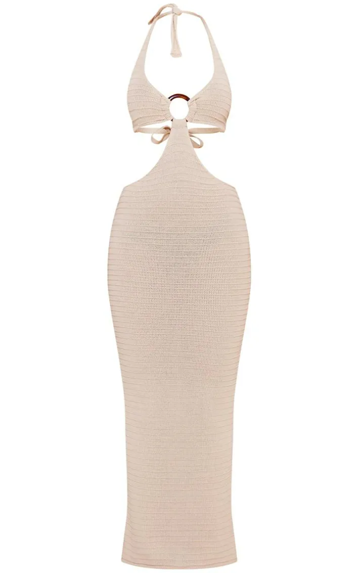 This dress is at the top of our new season hit list. Featuring a cream hue knitted material with ring detail and a maxi length, we’re obsessed. Complete the look with slides and a tote bag for a fierce everyday fit.