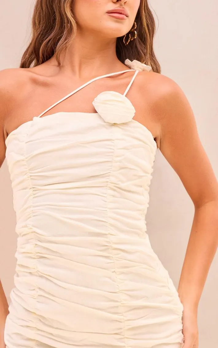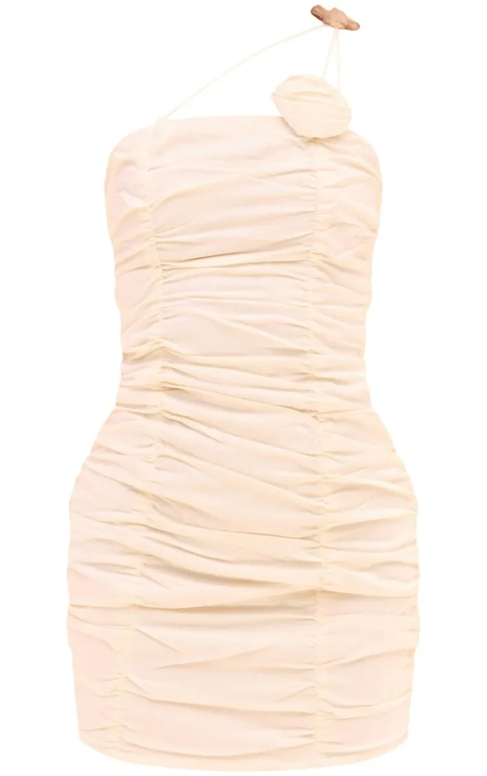 Get ready for all your new season plans with this versatile cream ruched floral strap linen look bodycon dress, we’re in love. This dress features a cream hue linen look material with ruched floral detailing and a figure-flattering fit. Pair with some platform sandals and gold hoop earrings for a luxe finish everyone will be obsessing over.